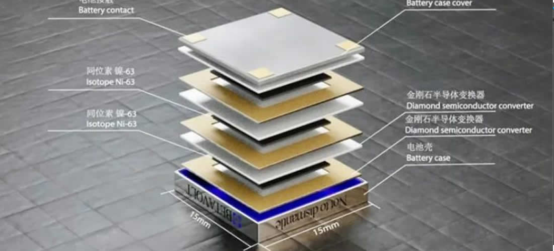 Nová baterie společnosti Betavolt, která nese označení BV100, obsahuje monokrystalové polovodičové diamantové vrstvy o tloušťce 10 mikronů. Mezi nimi je umístěna 2mikronová vrstva izotopu nikl-63. Díky své struktuře může baterie generovat elektrický proud. Baterie má modulární design, který může zahrnovat klidně stovky takových modulů.