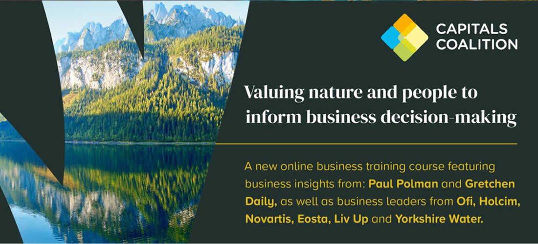 The Capitals Coalition has launched a free, online business training course entitled, “Valuing nature and people to inform business decision making.” The course was created to equip the private sector with the tools and knowledge needed to embed the value we receive from the capitals into core business strategy and across decision-making. This course was developed together with We Value Nature, a collaboration between ICAEW, WBCSD, IUCN and Oppla and with support from Nature Squared. Registrations for this course are now open here.